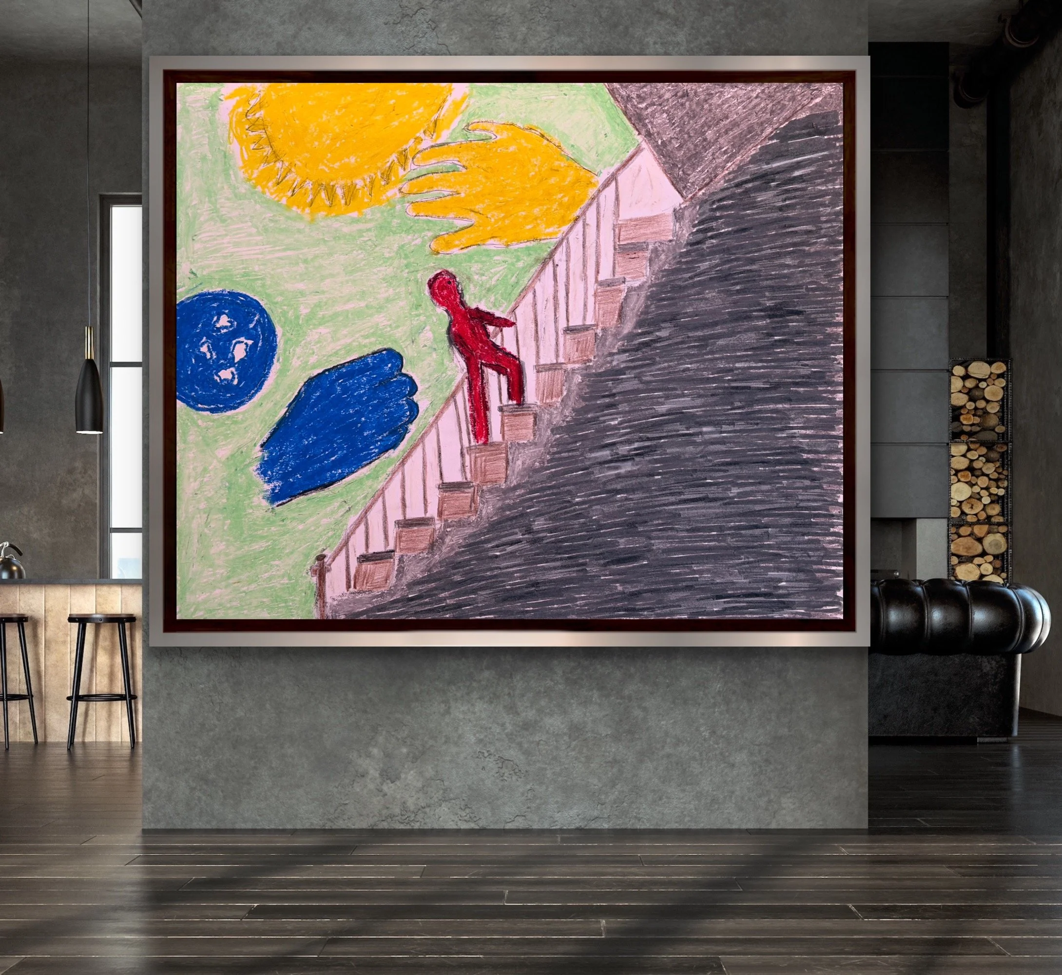 Through simplified forms and expressive color, the piece reflects the tension between internal pressure and external expectation. Movement is present, but resolution is withheld. The work invites the viewer to consider the discomfort of being “in between”—where direction is uncertain, yet unavoidable.